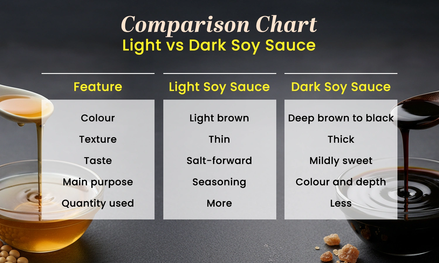 Comparison Chart: Light vs Dark Soy Sauce