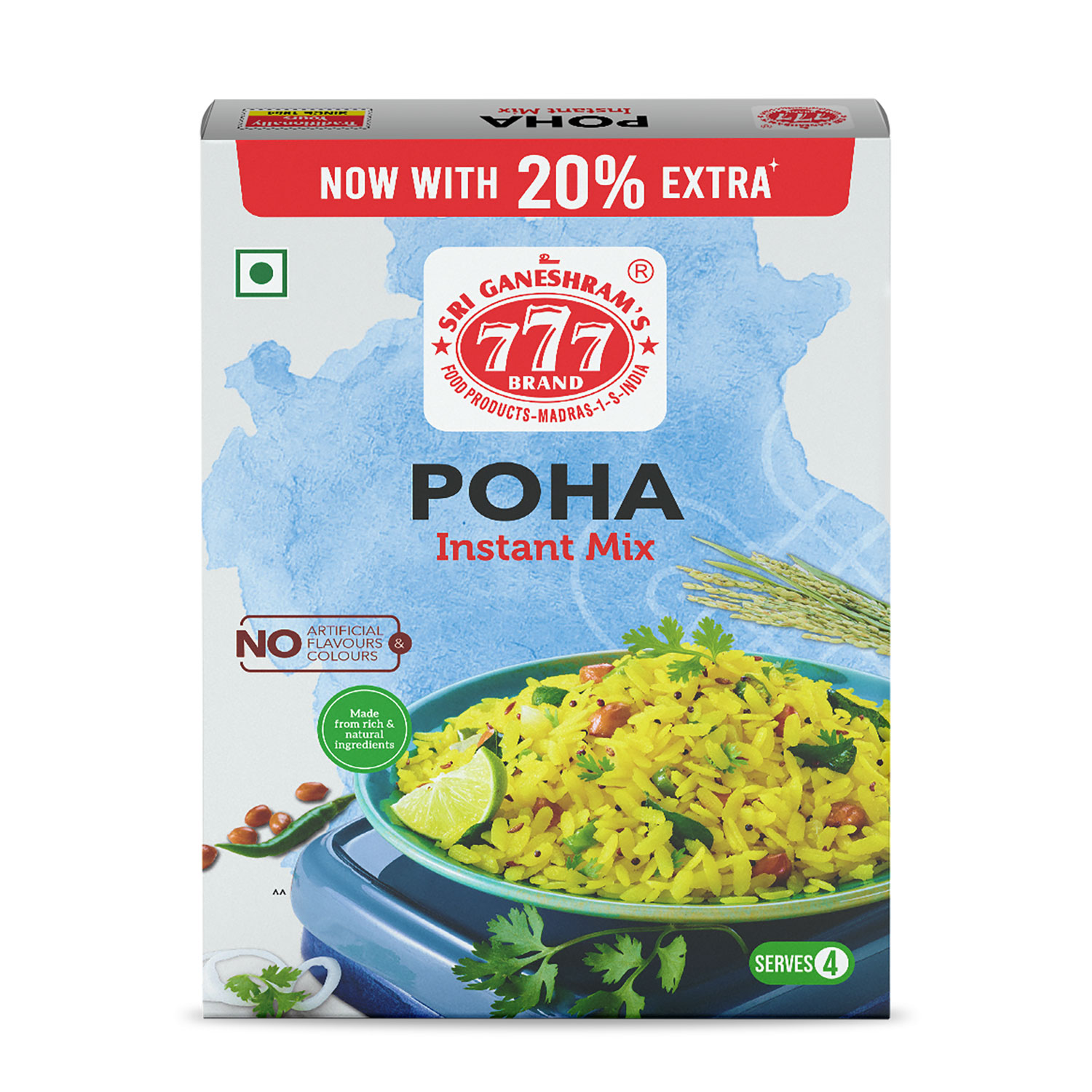 Do you need a lighter breakfast or a simple in-between snack option? Here you go with 777 Original Maharashtra Style Instant Poha – a snack which is tasty and light to the tummy. A quick healthy snack loaded with spices and condiments will have the lingering taste of home prepared in a jiffy. 777 Brand – Traditionally yours since 1954
