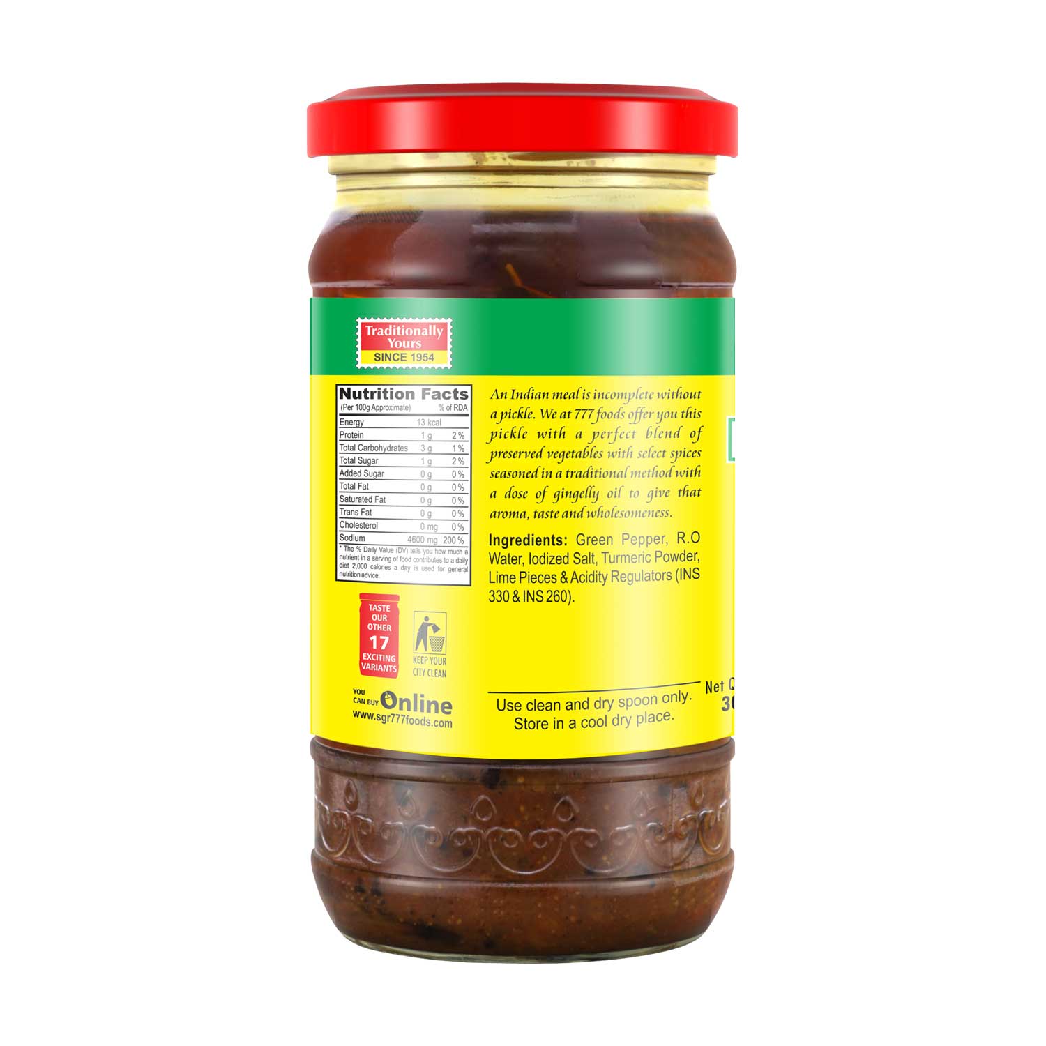 Typical Kerala style Pickle made from strands of Fresh Green Pepper along with ginger tit bits and lemon pieces pickled to perfection in brine solution.