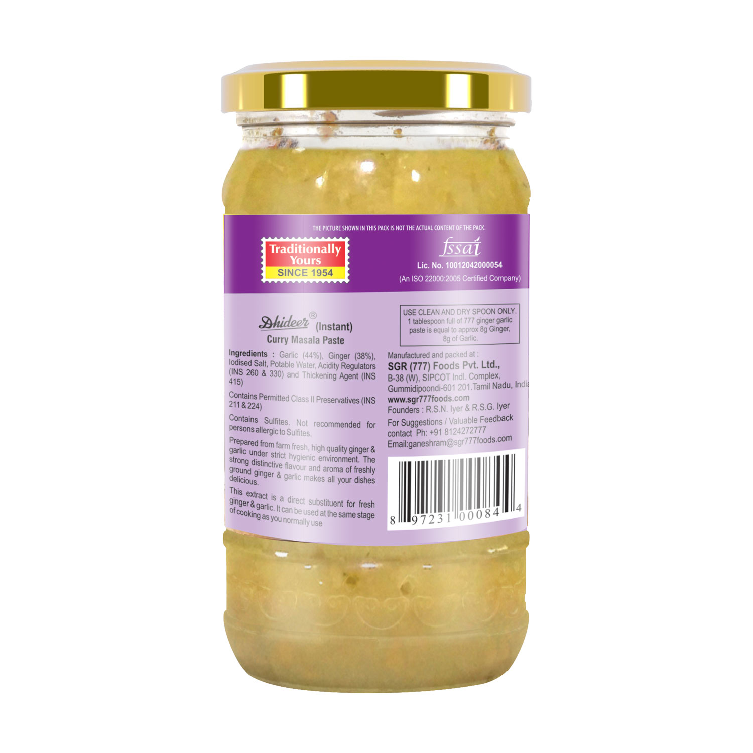 The 777 Ginger Garlic Paste is made from high-quality ingredients with absolutely no artificial additives. One of the finest ginger garlic pastes available in India, it saves time without sacrifice. Its optimal ginger garlic paste proportion yields consistent results in every recipe. This paste captures rich, authentic flavour while providing the convenience today's busy kitchens demand.
